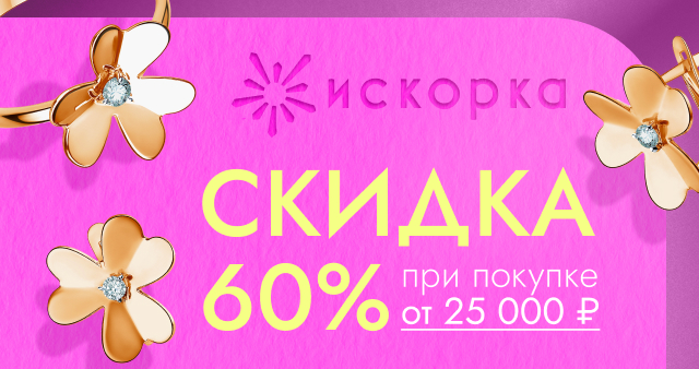 Данная акция суммируется с основной скидкой - 50%! Получите возможность приобрести золотые украшения от Искорки со скидкой 60%!